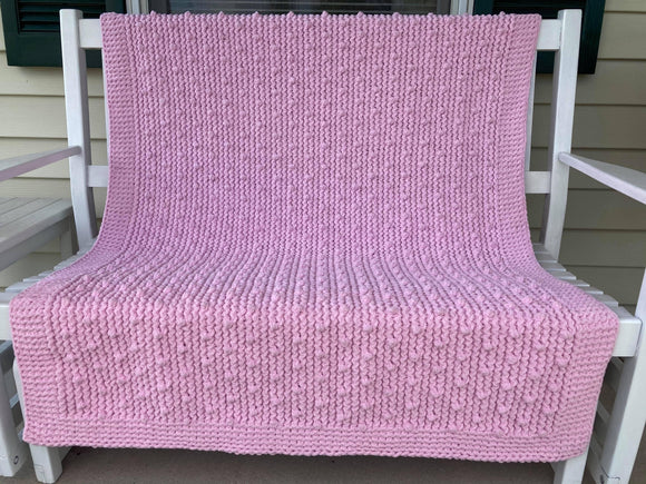 This beautiful afghan was designed by Laurie Schue using the CinDWood 3/4 80 peg large round afghan loom. It is flat on the backside and has bobbles on the front. I reminder of the cute bobble dot dresses of the past.