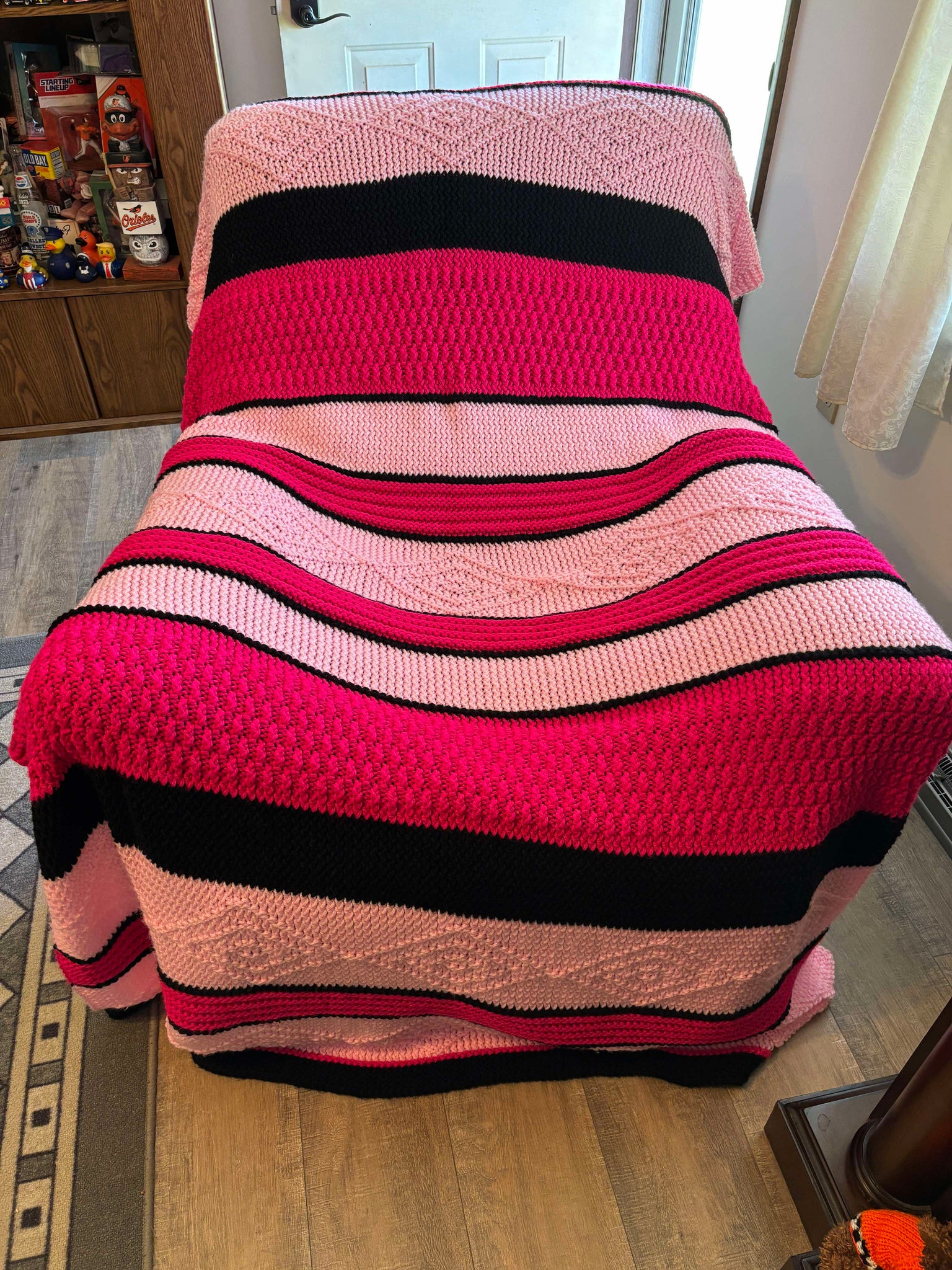 This beautiful afghan pattern was originally a part of the Giant Oval Afghan Loom bundle but can now be purchased seperately. Created by Laurie Schie it is a beautiful design made on the 5/8" gauge loom with 140 pegs