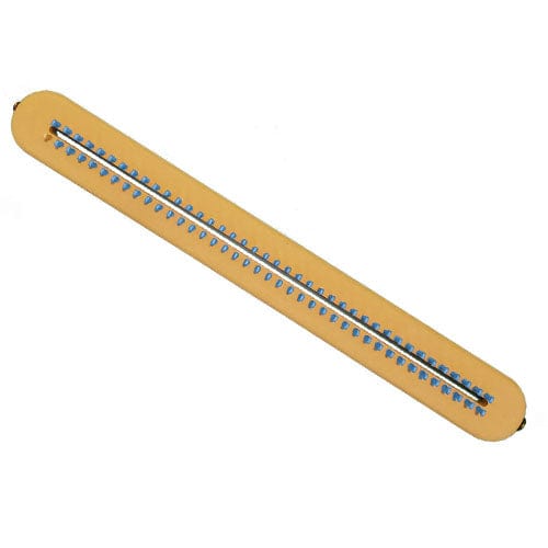 This scarf loom is for double knitting projects it has only 1/2" spacing between the 2 rows making it ideal for lighter weight yarns.