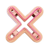 This adorable mini X sock loom is 7"x 7" It is a perfect take along loom to create any size sock. With the 4 wedges it has the ability to decrease down to 16 pegs and up to 70.  A great loom for people who love to make customized socks.