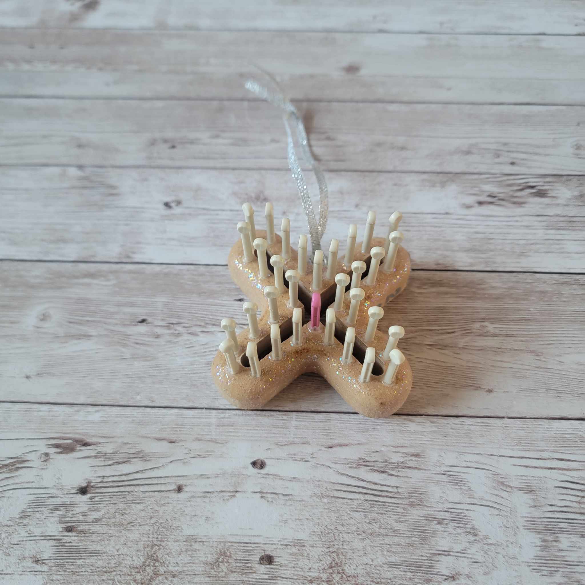 I really loved loom knitting on this lovely 5/16 gauge loom with a 1 weight sock yarn. Thanks for another great little Christmas loom🥰